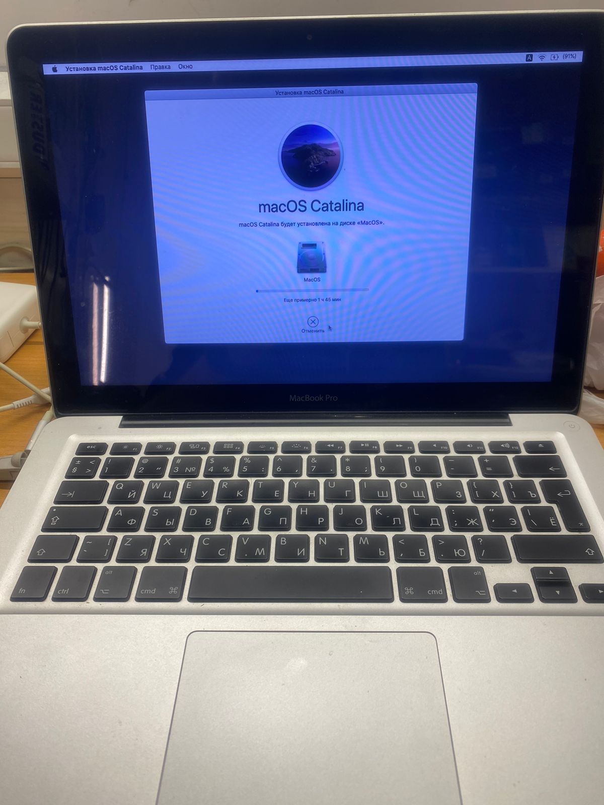Восстановил систему mac OS , поставили все необходимые программы для работы и протестировали работу системы и новый аккумулятор.